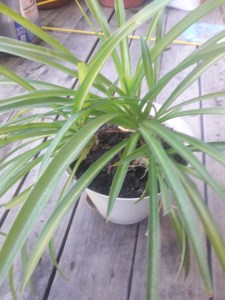 In other garden news, I finally replanted the spider plant I’ve had for a couple years. I didn’t realize quite how much it had outgrown its former home. It had somehow moved all the dirt to the top of the pot and (I swear) eaten the rest. It’s much happier now, I suspect. It’s easier to keep watered, anyway.